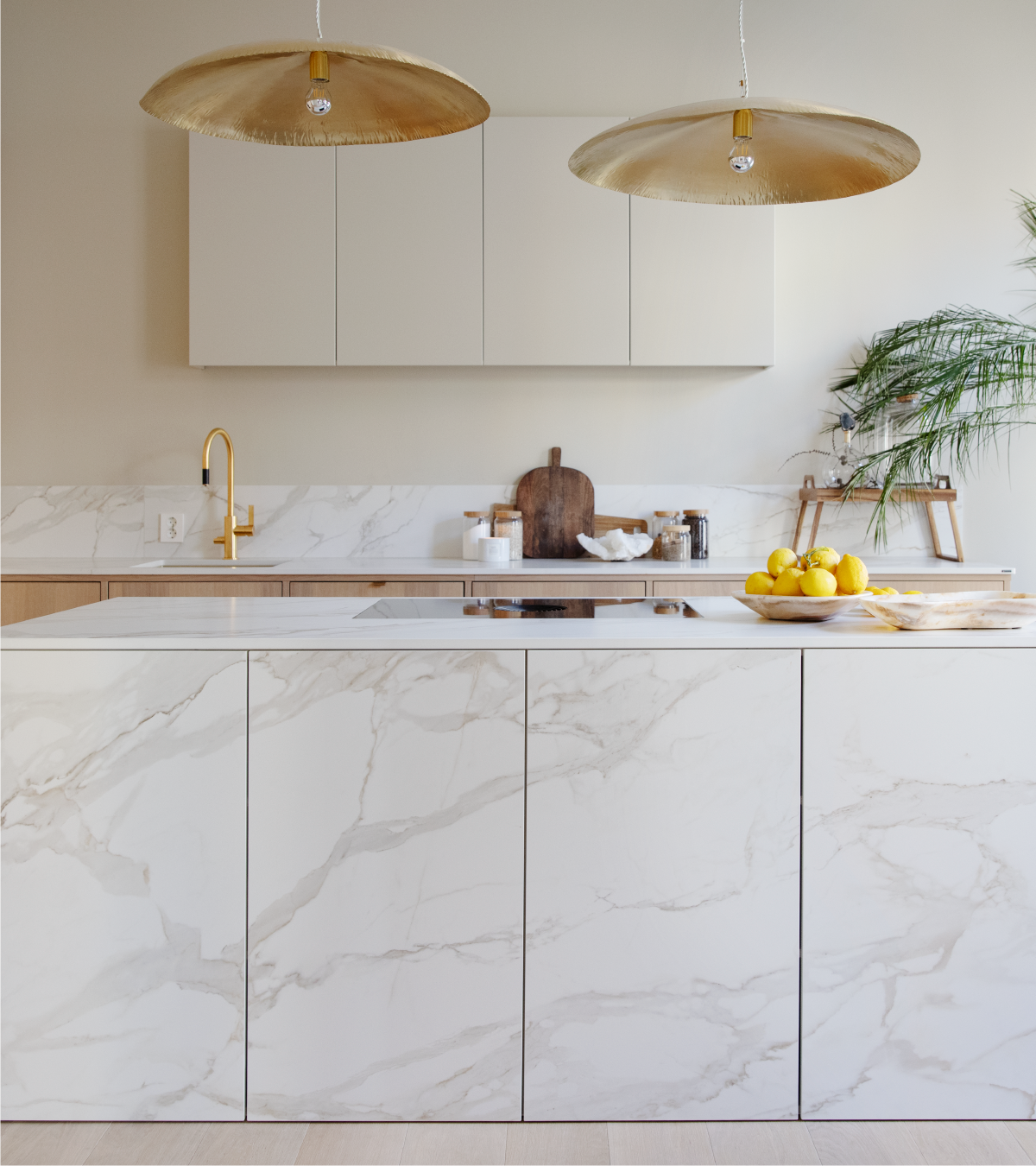 Pental Quartz Countertops give the look of marble in this kitchen without the porosity or maintenance.