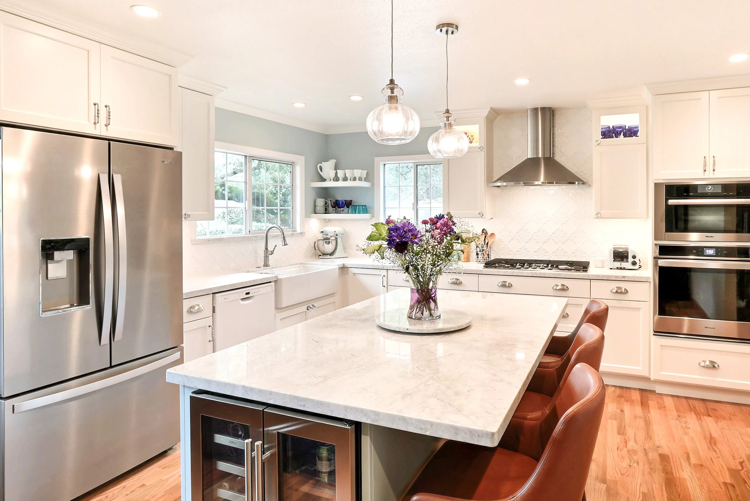 Of course other beautiful and popular countertop surfaces can often include soapstone (which is a natural stone and requires regular care and maintenance), butcher block, concrete, terrazzo, and other wood options - I’ve even turned a Pottery Barn table top into an island top! The biggest considerations for your material selection will be focused around how you cook/prepare your food, and how you and your family intend to use the space. As long as you’re aware of the materials available and the pros and cons of them, you can make the best choice for your kitchen!