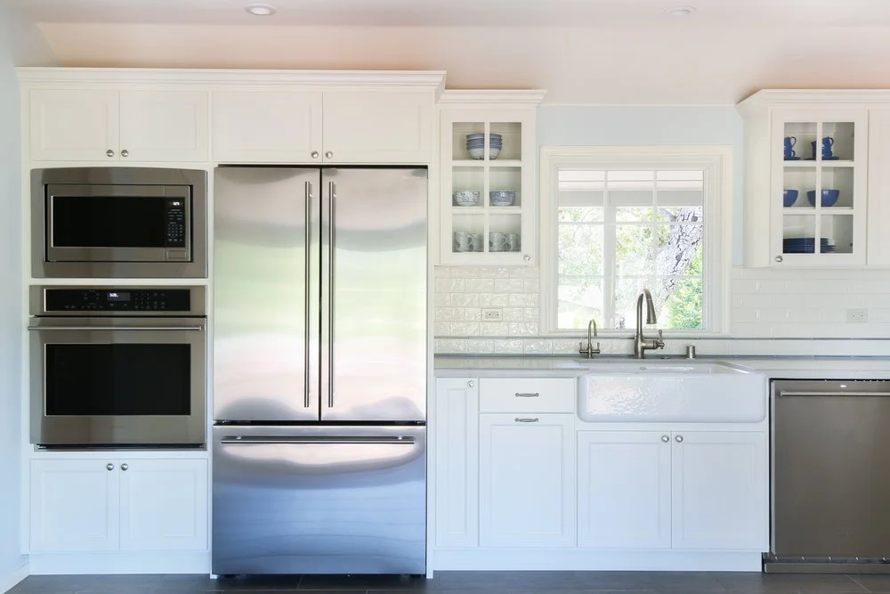 Even if you’re not going to ‘hide’ your microwave, you still may not want to draw attention to it; so if you’ve selected a wall oven, a popular combination is to have the microwave above, and we can align the top of the microwave with the top of the refrigerator for a seamless look.