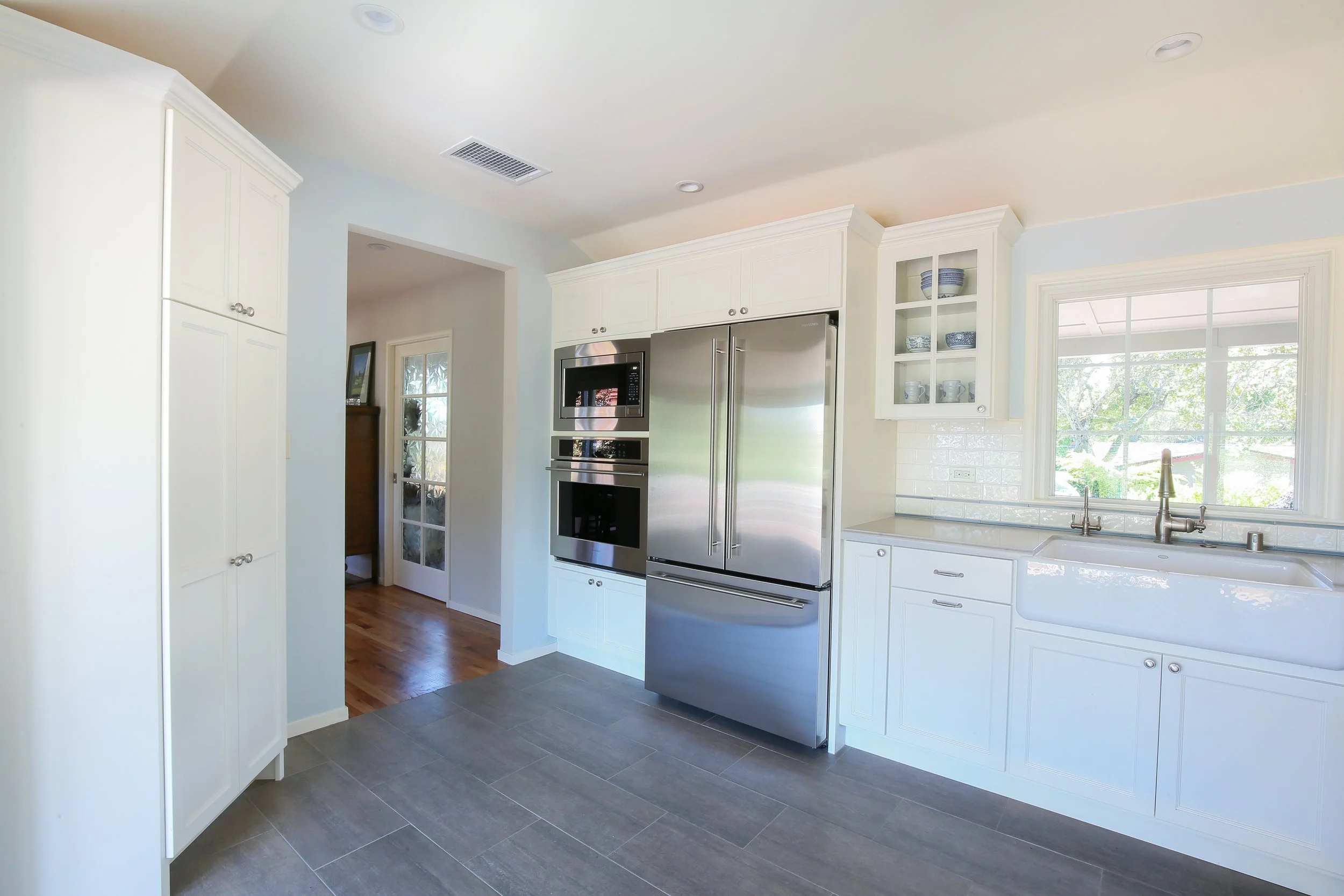 What an honor it was to be part of this Classic California Ranch remodel! Originally built in 1940 with the architectural influence of the iconic William Wurster, this beautiful home had a small, dated kitchen that didn't do it justice. The floor plan had become rather compartmentalized due to remodels and additions by the previous homeowners, and the current homeowners wanted to thoughtfully re-design the kitchen paying tribute to its roots while also gaining more open and functional space. Ultimately, we relocated the kitchen from its original location to what was an informal dining space. We reconfigured the mud/laundry room and the space adjacent to it and the kitchen to allow for a more natural flow between the kitchen, dining, and living. The space that previously housed the kitchen was turned into a gallery, where the homeowners could sit and enjoy their morning coffee while viewing the golf course. In the gallery, the original brick from the exterior patio was uncovered under many layers of flooring. The contractor was able to restore the brick and re-install it for the gallery floor, creating a space that truly emphasizes the leisurely, laid-back California lifestyle that blends the indoor and outdoor spaces that the architecture of William Wurster so beautifully emphasizes.